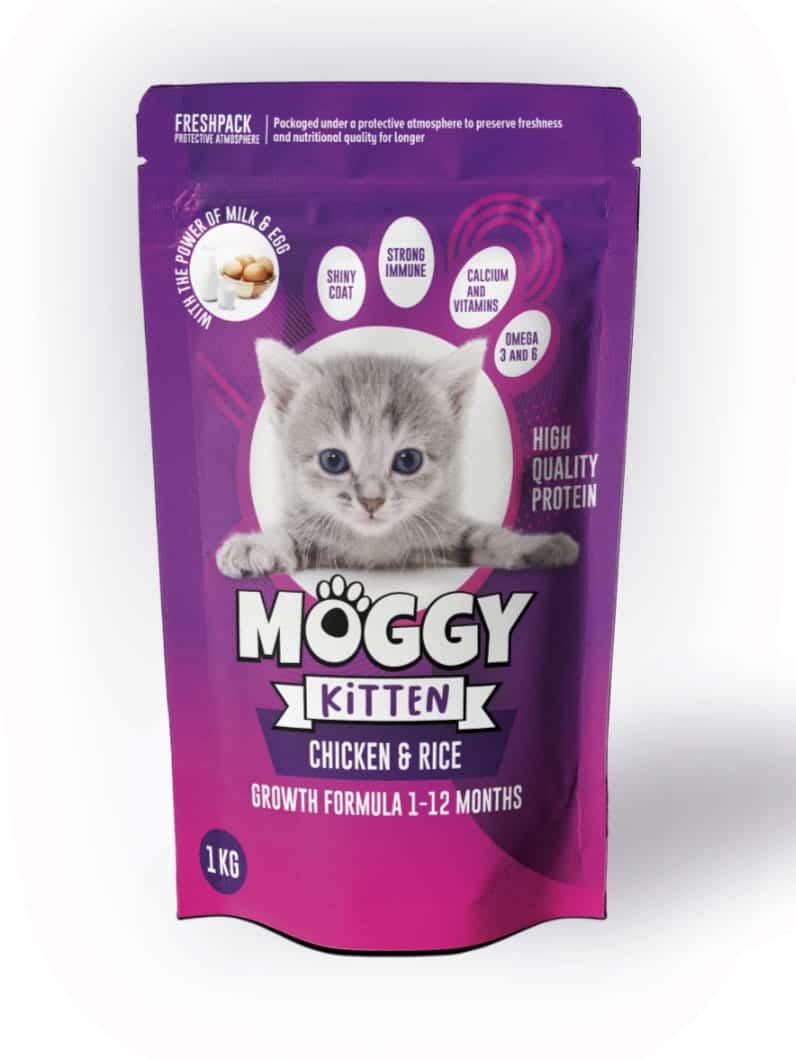 Moggy Kitten Dry Food has been formulated for felines between 1 and 12 months of age. Its specialized growth formula contains all the nutritional requirements to support growth, while the delectable combo of chicken and rice ensures that your kitten enjoys every bite.