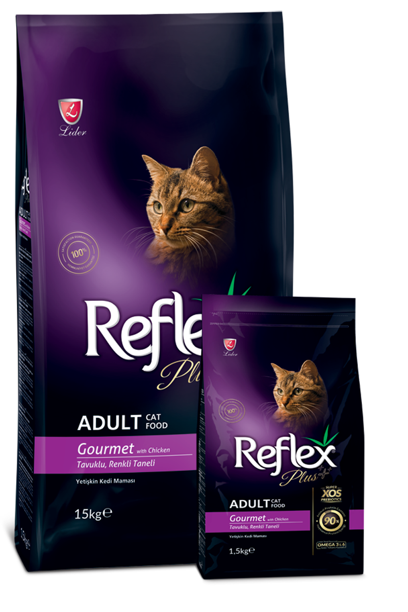 Reflex Plus Gourmet Adult Cat Food with Chicken features a delicious chicken flavor that appeals to cats’ taste buds. It is rich in vitamins, minerals, prebiotics, and antioxidants, and is a super premium cat food formulated with a complete and balanced formula suitable for all breeds over 12 months old. Product of Turkey